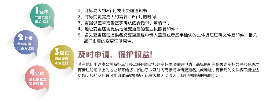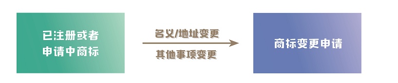 商標(biāo)核準(zhǔn)注冊后,商標(biāo)注冊人的名義、地址或其他注冊事項發(fā)生變更的,應(yīng)當(dāng)向商標(biāo)局申請辦理相應(yīng)變更手續(xù)。變更商標(biāo)注冊人名義或地址的,商標(biāo)注冊人應(yīng)將其全部注冊商標(biāo)一并變更。商標(biāo)變更可以是已經(jīng)獲準(zhǔn)注冊的商標(biāo),也可以是在申請中的商標(biāo)。