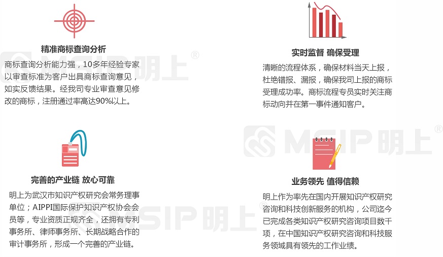1、專業(yè)知識產(chǎn)權(quán)背景 明上利用自己專業(yè)化的知識產(chǎn)權(quán)背景,為企業(yè)知識產(chǎn)權(quán)領(lǐng)域業(yè)務(wù)提供專業(yè)解決、代理申報服務(wù)并完善申報工作中關(guān)于企業(yè)自主知識產(chǎn)權(quán)的專業(yè)問題。