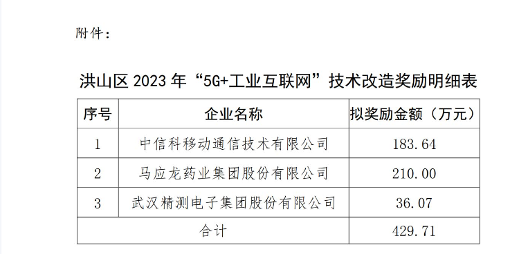【公示】關(guān)于洪山區(qū)2023年“5G+工業(yè)互聯(lián)網(wǎng)”試點(diǎn)示范項(xiàng)目獎(jiǎng)勵(lì)的公示